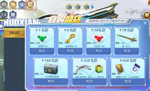 【活动入口】主界面“直购”按钮,界面中“购买”按钮可购买