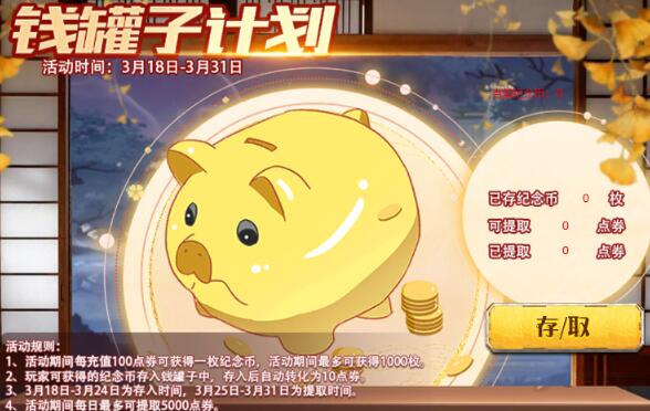 2.纪念币存入钱罐子后会转化为10点券,待时机成熟可提取点券。