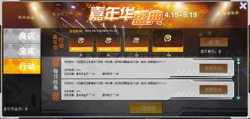 ①完成面板描述的每日任务即可获得任务奖励——嘉年华金币和嘉年积分