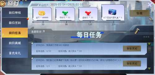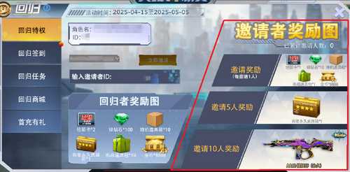【参与方式】主界面右侧“老兵回归”按钮,选择回归任务页面