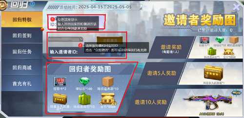 ②激活方法:点击主界面右侧“老兵回归”按钮,在该界面看见“输入邀请者ID”的输入框。