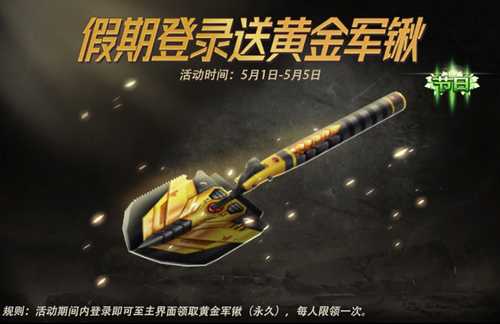 【活动规则】活动期间登录游戏可获得黄金军锹(永久)。限领取1次。