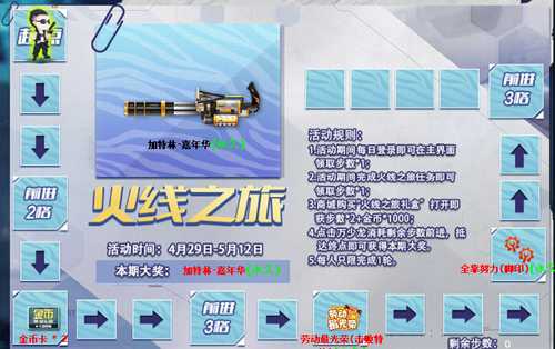 4点击万少龙消耗剩余步数前进。抵达终点即可获得本期大奖加特林-嘉年华(永久)