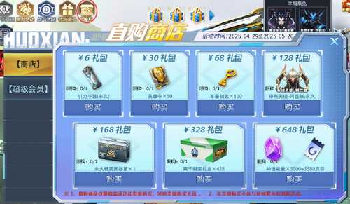 【活动入口】主界面“直购”按钮,界面中“购买”按钮可购买