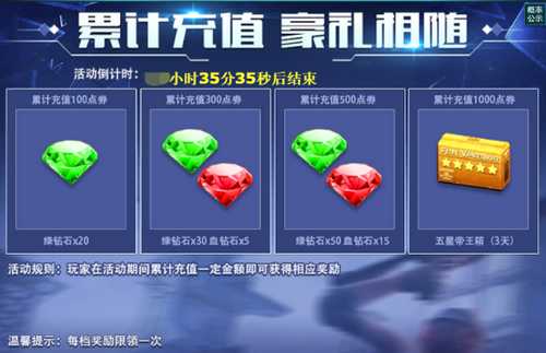 累计充值100点券:血钻石*10+元素核心-光晕(1天)