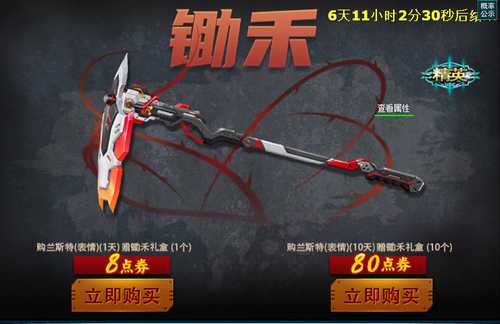 【活动细则】限定时间内,限时折扣价8点券购买兰斯特(表情)(1天),即可赠送锄禾礼盒一个。买表情(10天)送锄禾礼盒10个。