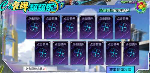 ②点击卡牌即可翻牌,翻到两张相同的牌获得对应的奖励。