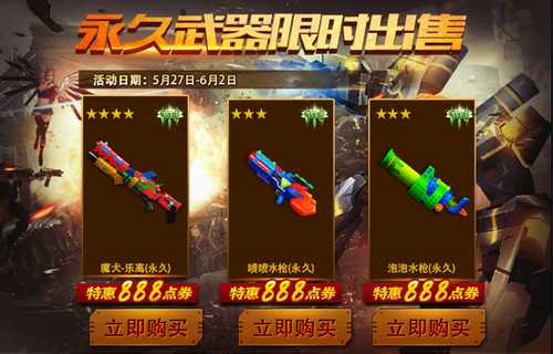 6、武器返场折扣(魔犬-乐高、喷喷水枪、泡泡水枪)