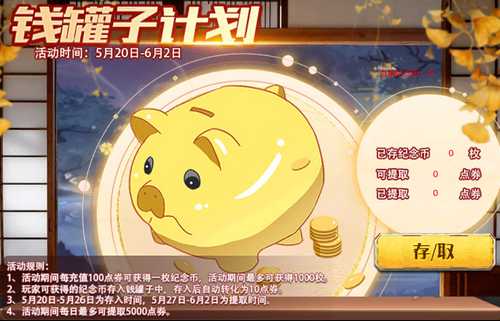 2.纪念币存入钱罐子后会转化为10点券,待时机成熟可提取点券。