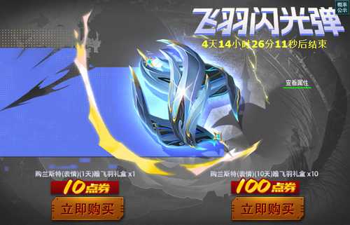 【活动细则】活动期间购买“兰斯特”表情,即可获得“飞羽礼盒”一个。买10天表情送10个礼盒。