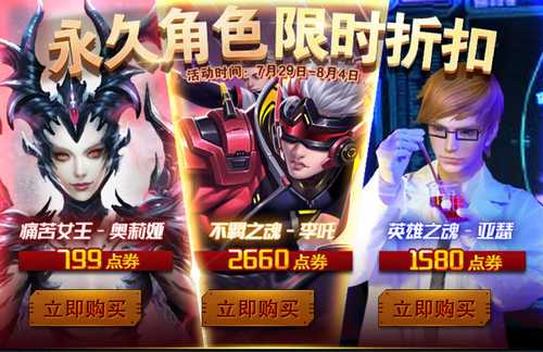 6、角色返场折扣(痛苦女王、李吒、亚瑟)