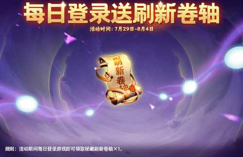 【活动规则】活动期间每日登录游戏可获得秘藏刷新卷轴1份。