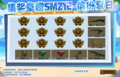 ⑥当所有奖章点亮,玩家可以获得SMZ12-缤纷夏日(永久)