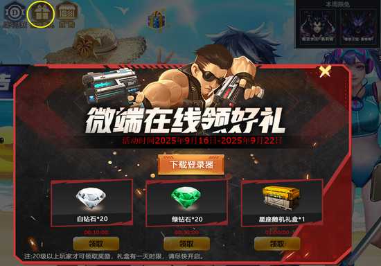 登陆礼:每日登录游戏后可直接领取武器体验礼盒;当日完成指定任务还可以获得绿钻石礼盒。