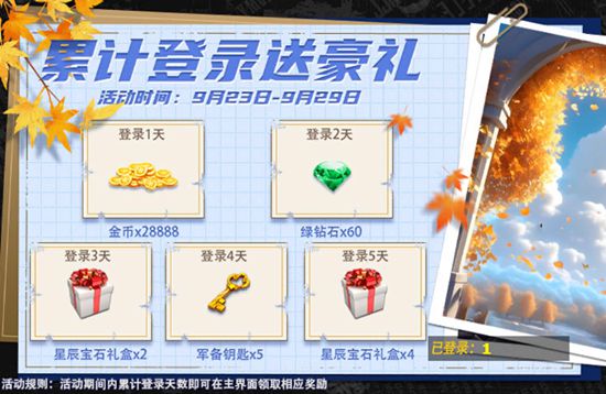 ③累计签到3天、7天时可以获得:星座随机礼盒(3天)*1、XM5-烈焰龙神(30天)*1