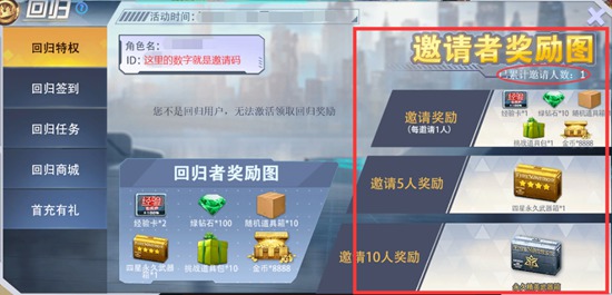 ②激活方法:点击主界面右侧“老兵回归”按钮,在该界面看见“输入邀请者ID”的输入框。