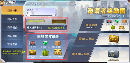 ④因每位回归老兵,仅可激活一次邀请码,请谨慎选择区服以及输入对应ID。