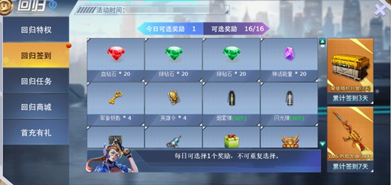 【参与方式】主界面右侧“老兵回归”按钮,选择“回归签到”页面