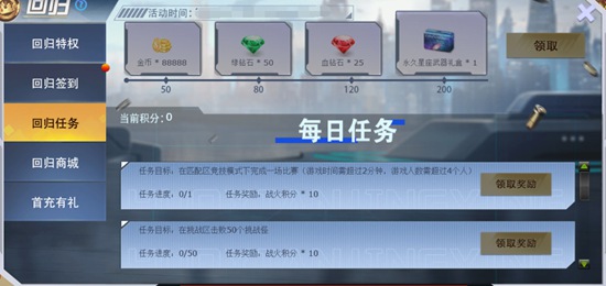 【参与方式】主界面右侧“老兵回归”按钮,选择回归任务页面