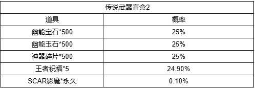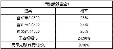 传说武器盲盒概率:礼包获取后发送至游戏内邮件,领取邮件时自动开启