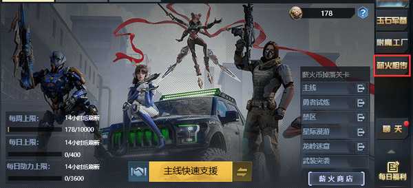 ①【非薪火相传身份标志】的玩家在大厅右侧活动按钮进入活动,可以使用【快速支援】功能,可以随机进入已开战的关卡房间。