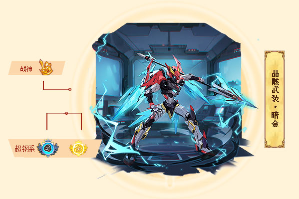 | 疾电充能 | 超钢系 | 一 | 被动 | 一 | 一 | 登场时对敌附加1回合滞缓,每场战斗限制4次;使用绝招时对敌附加血溃,登场时获得3层战意,每损失20%的生命值获得1层战意 |