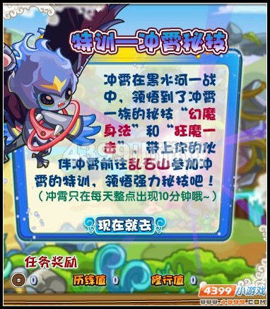 举例说明,当卡布们完成任务【序幕与冲突】时,就可以接取到冲宵的特训任务——【特训-冲霄秘技】。
