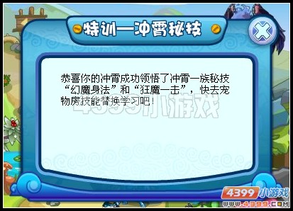 然后将冲霄放在背包,设为首宠,每逢整点去乱石山完成冲霄挑战,就可以习得特训技能——幻魔身法、狂魔一击了。