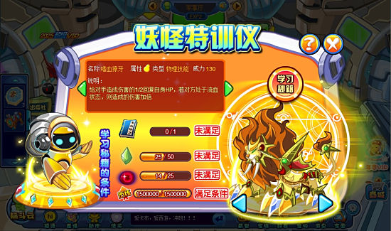 通过妖怪特训仪进行特训就不需要打架啦,只要收集好相关的特训材料,既可以对相关妖怪进行特训了。