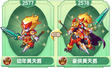 | 卡布西游幼年黄天爵、豪侠黄天爵资料 | |||||||