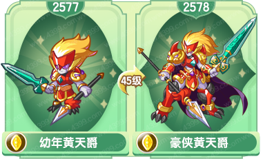 | 卡布西游幼年黄天爵、豪侠黄天爵资料 | |||||||