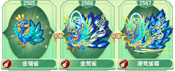 | 卡布西游金翎雀、金梵雀、净梵雀尊资料 | |||||||