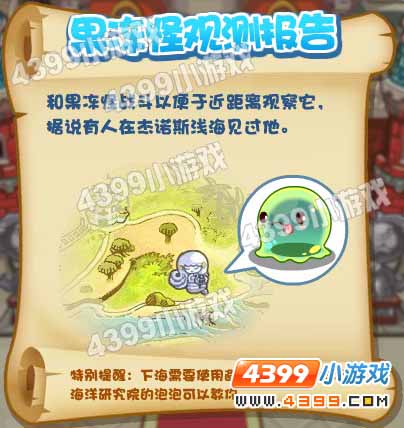 爱因斯坦让我们去【杰诺斯浅海】找果冻,然后和果冻怪战斗,才可以近距离观察他!(友情提示:要进入杰诺斯浅海,要先学会避水咒 点击进入避水咒视频攻略)
