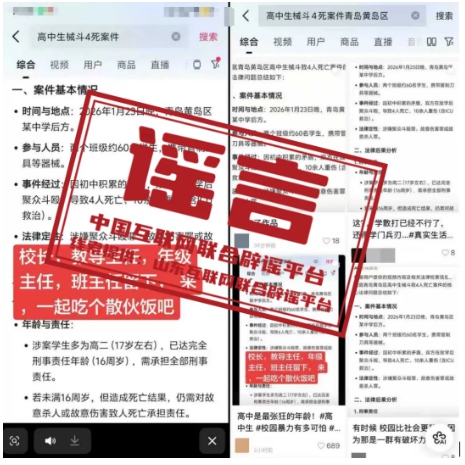 辟 谣 “青岛黄岛区高中生械斗致4人死亡”系AI生成