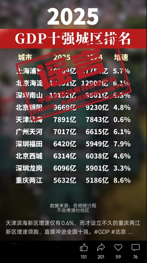 辟 谣 网传“滨海新区2025年GDP增速0.6%”系虚假信息