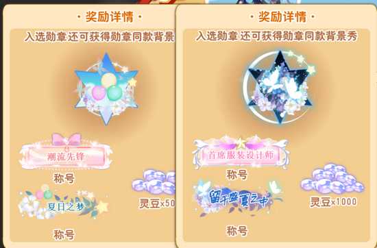 入选套装奖励:500灵豆、本期主题勋章、本期主题称号、潮流先锋称号