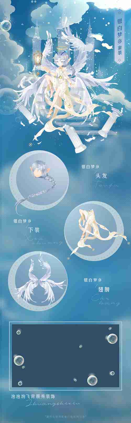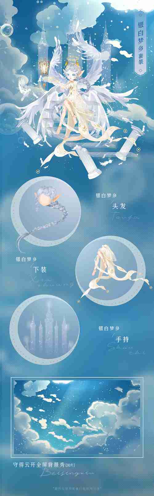 集齐银白梦乡套装,可获得对应面妆和称号:银白梦乡