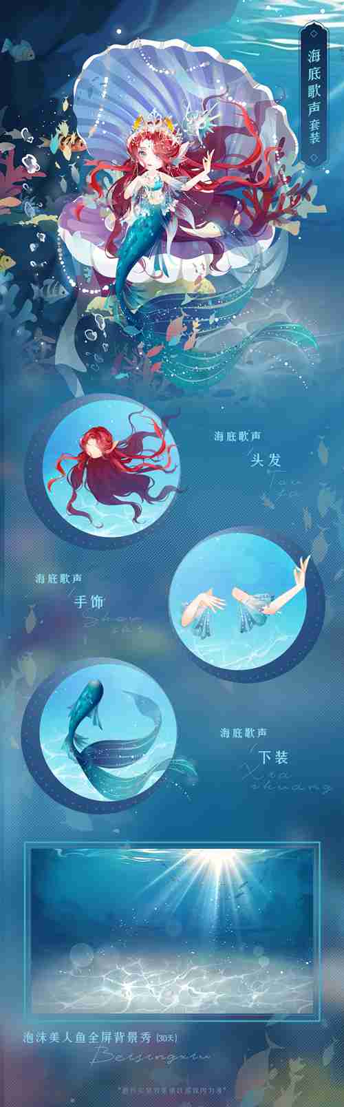 集齐海底歌声套装,可获得对应美瞳及称号:海底歌声