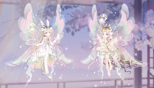 集齐花栖梦蝶套装,可获得对应美瞳及称号:花栖梦蝶