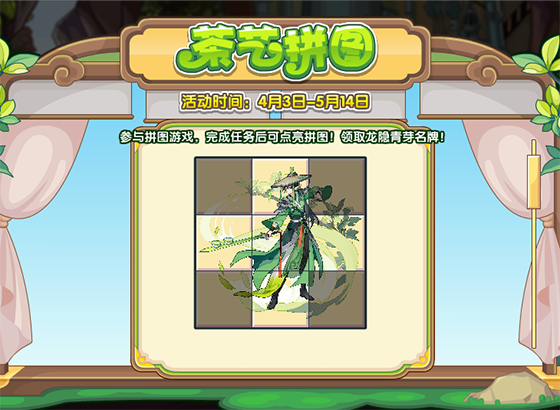 参与拼图游戏,完成任务后可点亮拼图!领取龙隐青芽名牌!