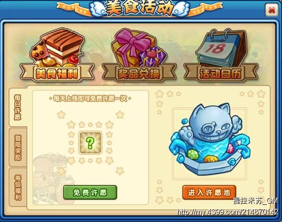 1)每日免费许愿:玩家每天登陆都可以可在美食福利里免费许愿领取一份奖励,珍贵道具、香料、四叶草随机派送。